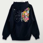 背面に大きな蝶を描いたインパクトあるパーカーです。